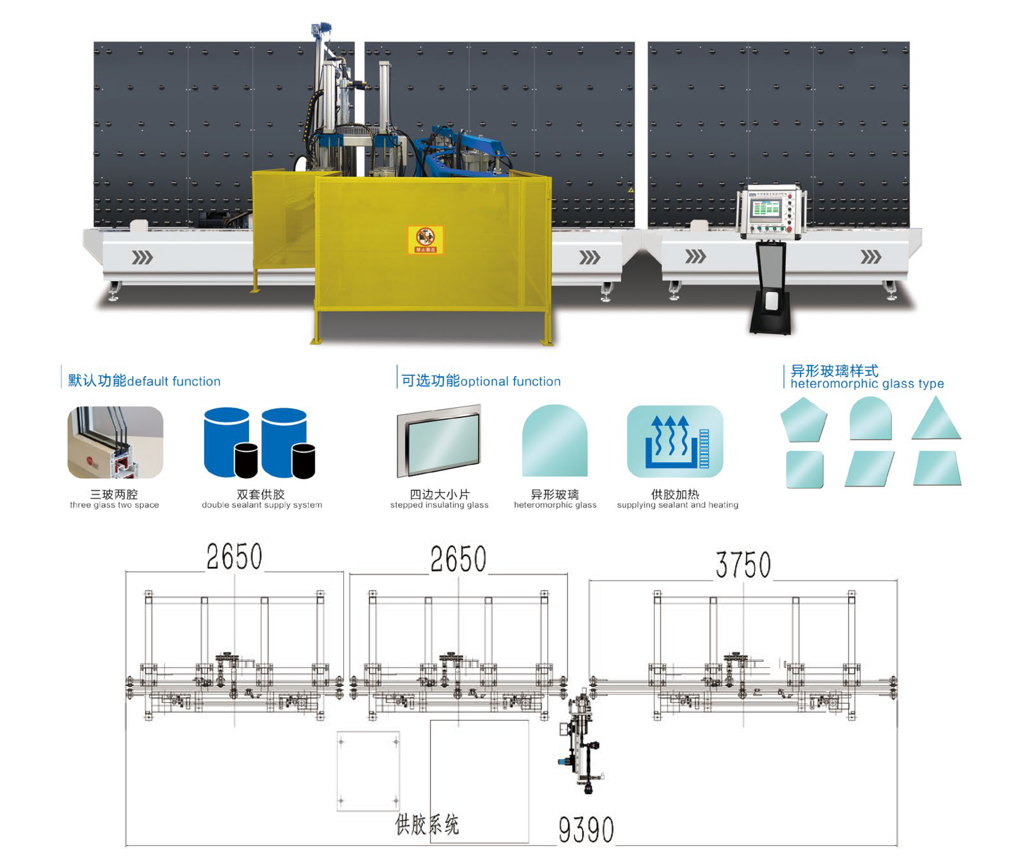 1.Achieve various size of rectangular insulating glass automatic continuously sealing, high efficiency & stable