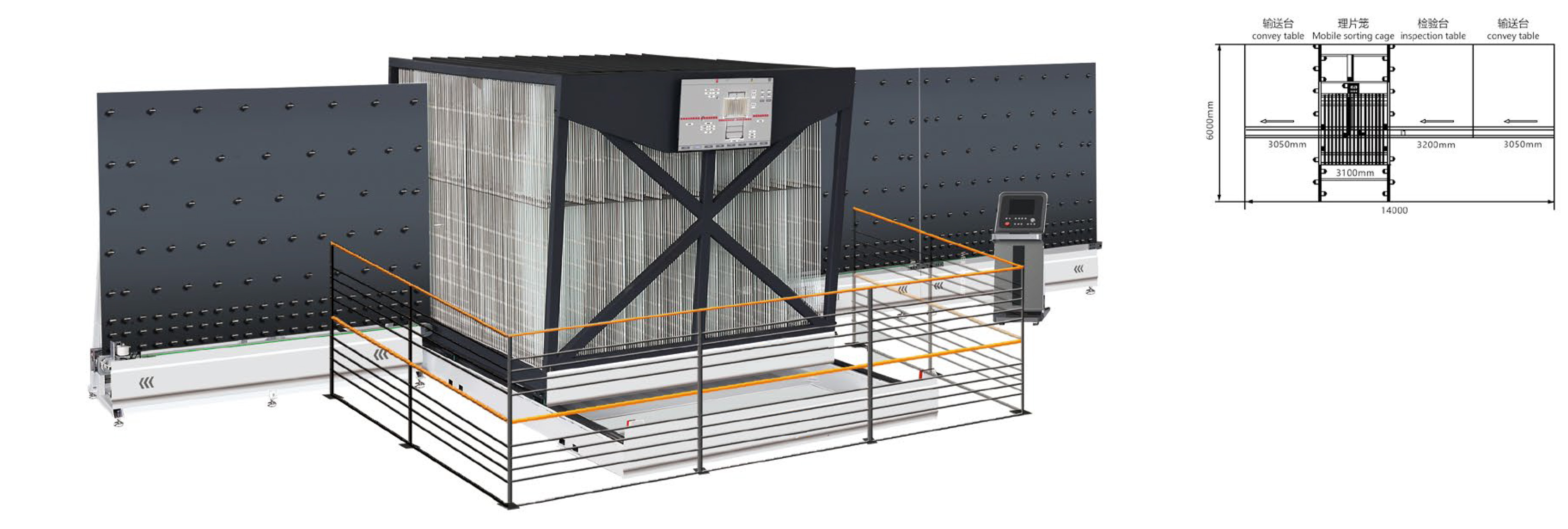 5.Multiple glass pieces in one cage:Compared with the similar products in the market,our sorting cage system can store 1 piece or 2 pieces of glass in one cage,and can load up to 180 pieces of glass continuously(glass length less than 1350mm)